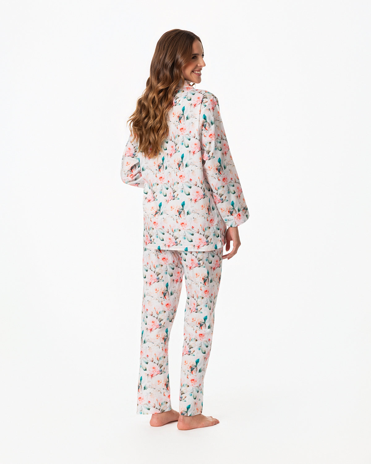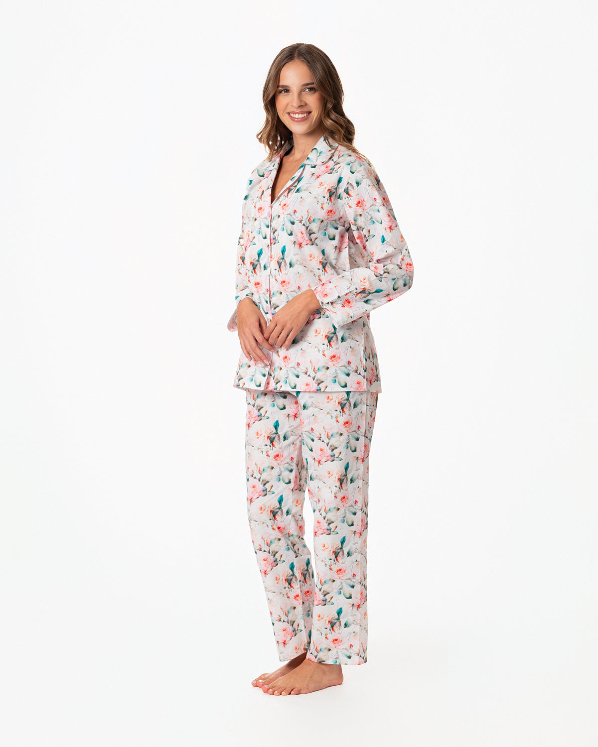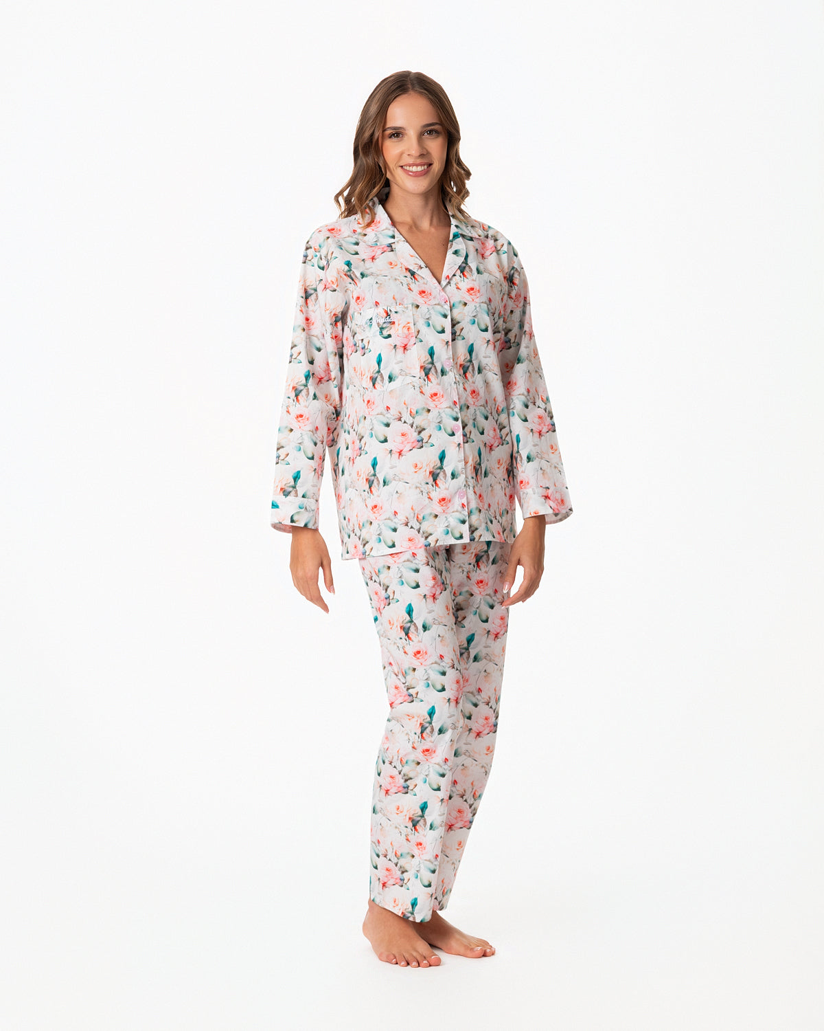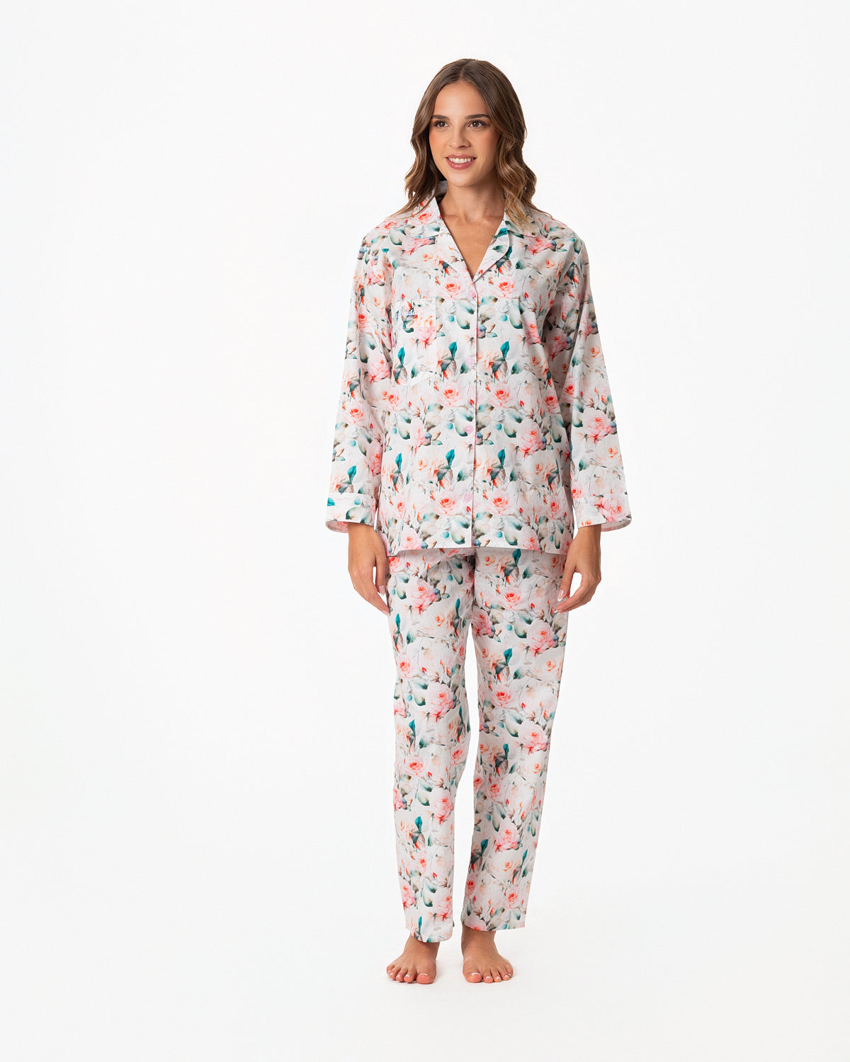 Pijama para dama, con blusa recta abierta, con botones y bolsillo en la parte superior derecha y manga larga.